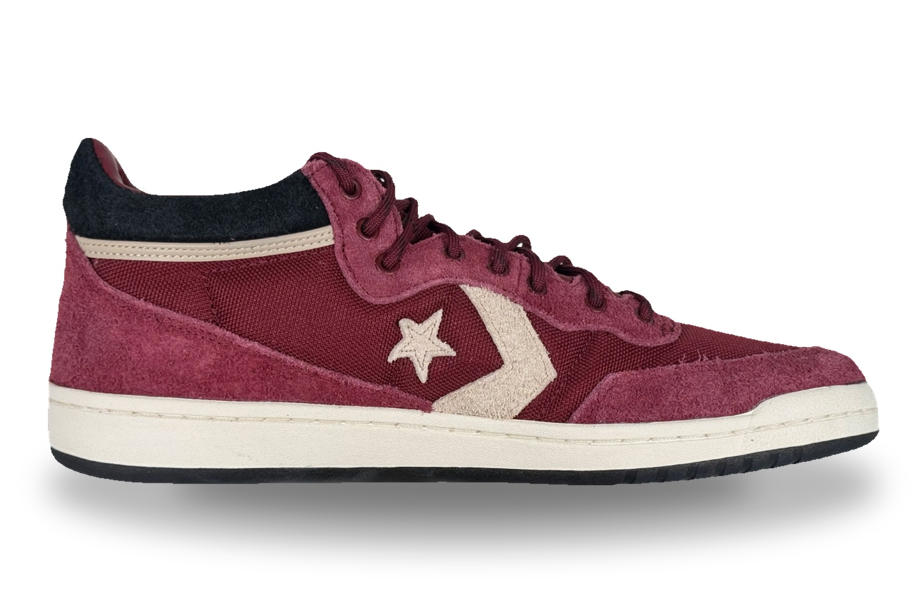 The Converse Fastbreak Pro Mid Suede Cordura in Deep Bordeaux / Egret / Black is a premium archive-inspired basketball mid-top, now available for just $56.99 — down from $85.00 retail, saving you 33%. Built with CORDURA® nylon body panels and rough-out suede overlays, this is one of the most material-rich Converse releases at clearance pricing. Two sizes available: 11.5 and 12 US Men’s. Browse our full selection of Clearance Sneakers with Free Shipping.
