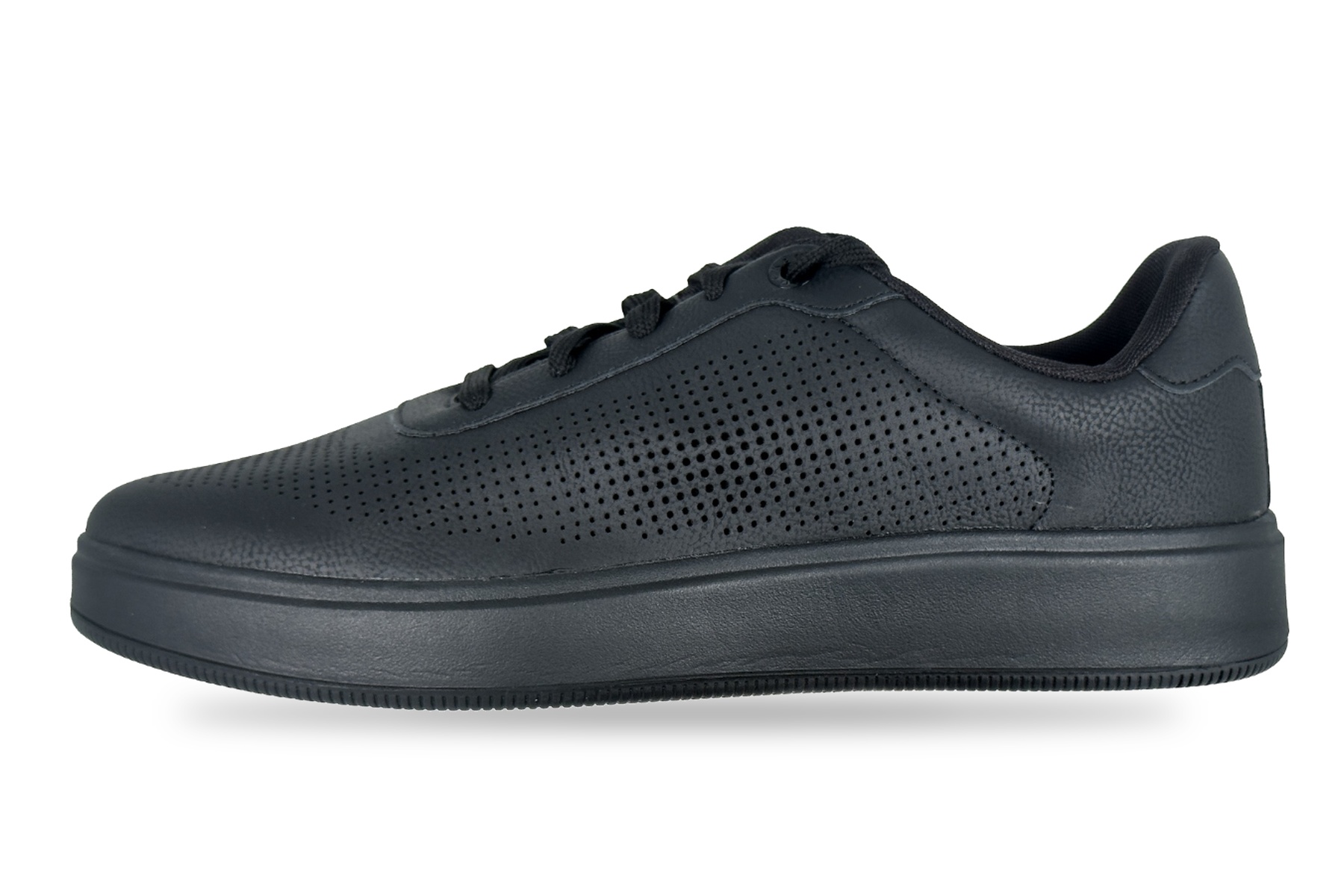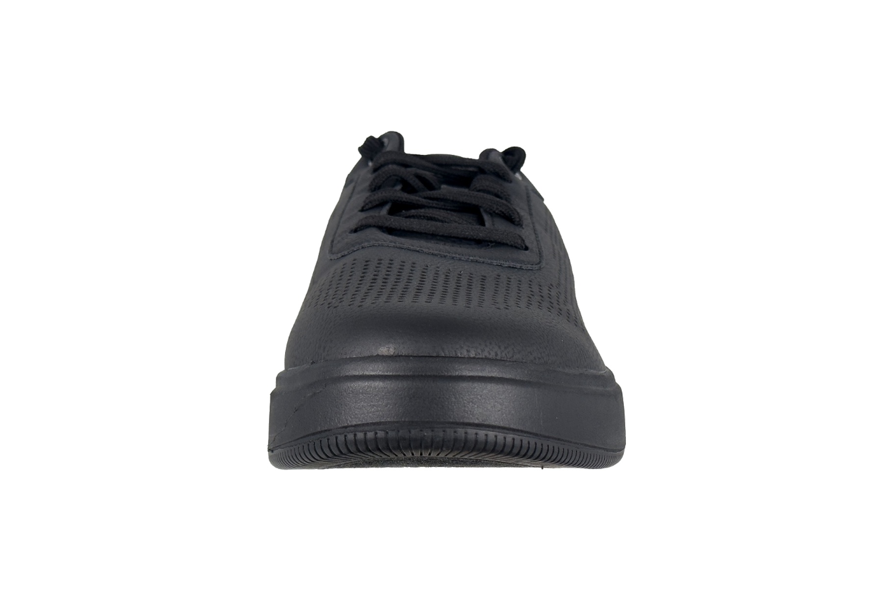 Yes — the clean all-black leather design and court-inspired silhouette make it a strong choice for business-casual and smart-casual environments. It pairs well with dark jeans, chinos, or casual trousers.