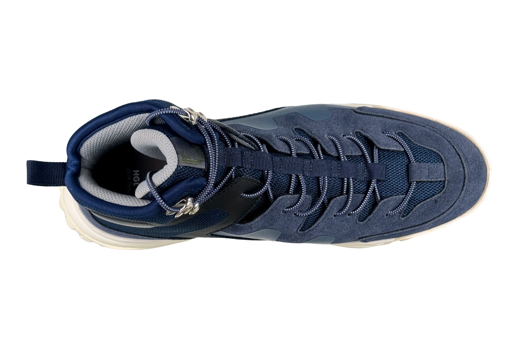 Hybrid Green Label Men’s Squill Casual Sneaker in Blue is a premium high-top trail-inspired sneaker that bridges the gap between outdoor boot and lifestyle sneaker. The multi-material upper layers navy blue suede, technical mesh panels, and smooth leather overlays across a high-collar silhouette secured with military-style metal speed lace hardware at the throat. Men’s size 11. Retail $135.00 — now $64.99 with free shipping. Browse more styles at Clearance Sneakers + FREE SHIPPING.