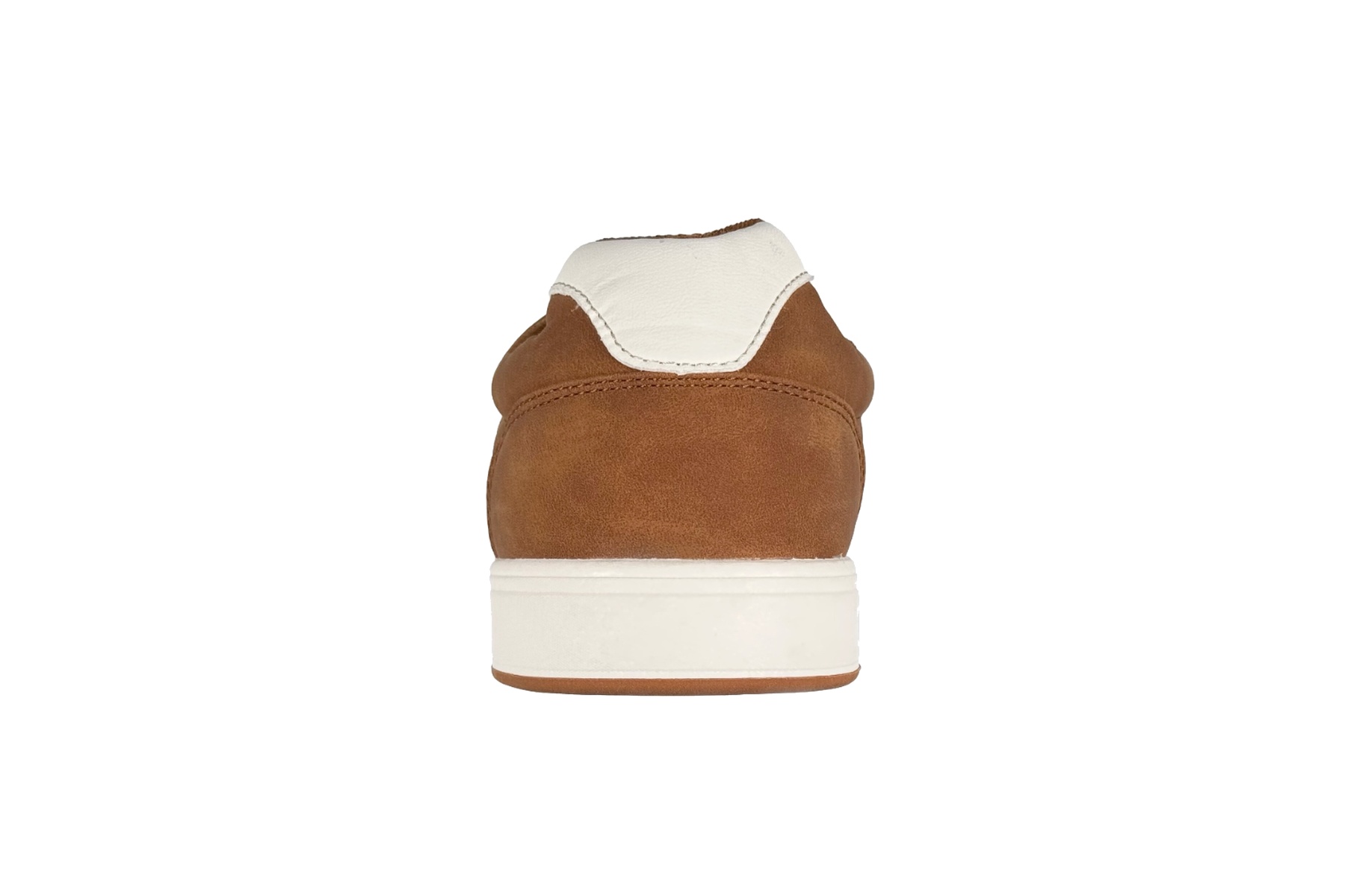 The outsole is tan gum rubber with a traction tread pattern — a classic detailing choice that complements the brown upper and provides reliable grip on everyday surfaces.